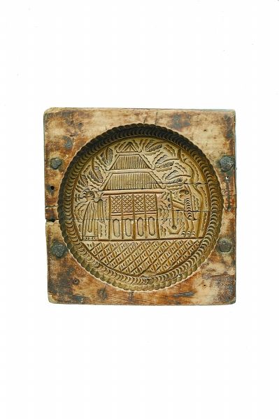 “月中仙桂”月饼模具发现于我国晋南地区。晋南自古以来经济发达,文化底蕴深厚。精致细腻的雕刻纹样,有一种典型的“晋南氛围”——广寒宫被描绘成院落之形,庭院深深有一种晋商大院的浑厚气势。规整的菱形地砖,寓意着生意平顺,家族安康。玉兔捣药象征着对长者康健的祝福,官人折桂象征着子孙及第的追求。遥想当年,一家老小,在中秋佳节,月圆之日,先祭祀祈福,后团圆共食。既是对先人的追思,也是对团圆的祈愿。分食的月饼味道和嫦娥奔月的故事留存在了孩子们的记忆里。